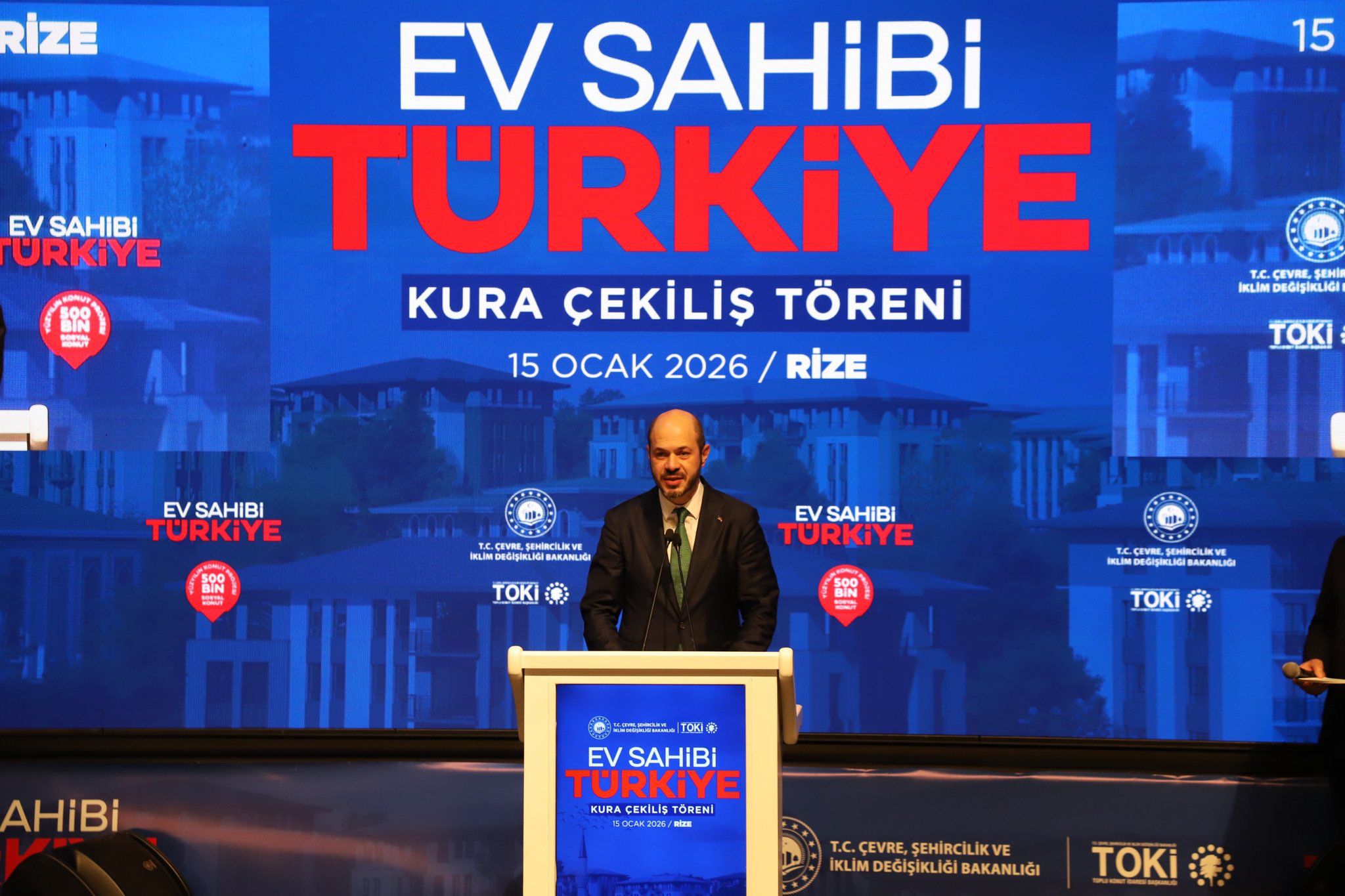 Çevre, Şehircilik ve İklim Değişikliği Bakanlığı, Toplu Konut İdaresi Başkanlığı (TOKİ) tarafından ‘500 Bin Sosyal Konut Projesi’ kapsamında Rize’de inşa edilecek 2 bin 42 konutun hak sahiplerinin belirlenmesi için kura töreni düzenlendi.